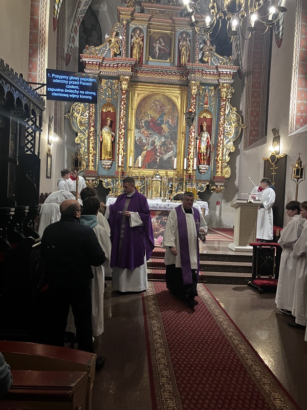 W Środę Popielcową rozpoczęliśmy szczególny czas w roku liturgicznym – Wielki Post. To okres refleksji, wyciszenia i duchowego przygotowania do nadchodzących świąt Zmartwychwstania Pańskiego. Już sama liturgia tego dnia wprowadza w atmosferę skupienia i powagi, przypominając o potrzebie zatrzymania się i spojrzenia w głąb własnego serca. Msze Święte sprawowane w naszej parafii stały się więc wyraźnym zaproszeniem do podjęcia trudu wewnętrznej przemiany oraz odnowienia relacji z Bogiem i drugim człowiekiem. Słowo Boże i modlitwa prowadziły nas ku refleksji nad kruchością życia oraz nad tym, co w codzienności wymaga nawrócenia i uporządkowania. Szczególnie wymownym momentem Eucharystii był obrzęd posypania głów popiołem. Ten prosty, a zarazem głęboko symboliczny gest pokory i świadomości przemijania zgromadził wiernych oraz duchowieństwo we wspólnym akcie skruchy. W ciszy i modlitewnym skupieniu każdy mógł osobiście odpowiedzieć na wezwanie do nawrócenia, rozpoczynając czterdziestodniową drogę duchowej odnowy.