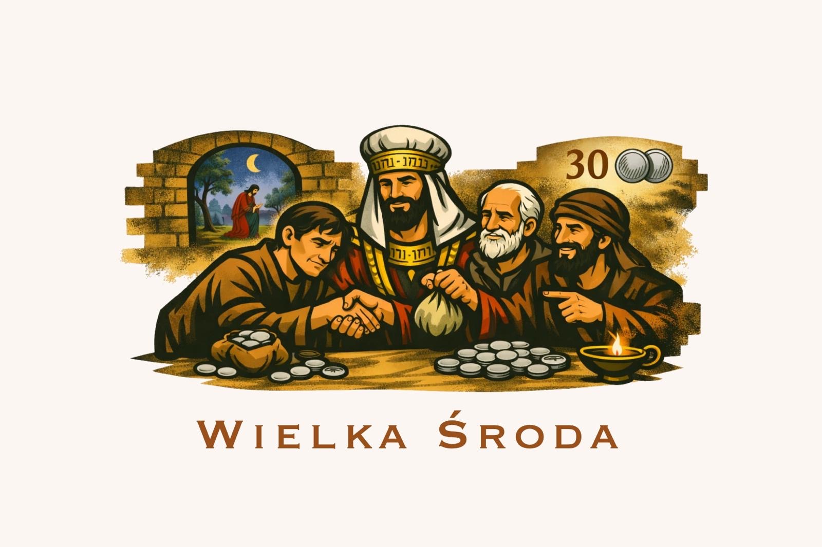 Wielka Środa bywa nazywana dniem zdrady Judasza. Ewangelia (Mt 26, 14–25) opisuje moment, w którym Judasz uzgadnia z arcykapłanami wydanie Jezusa za trzydzieści srebrników. Jest to jeden z najbardziej dramatycznych momentów Wielkiego Tygodnia. Zdrada Judasza ukazuje, jak niebezpieczne mogą być chciwość, rozczarowanie i brak zaufania wobec Boga. Jednocześnie pytanie uczniów: „Czy to ja jestem, Panie?” staje się zaproszeniem do rachunku sumienia. Dzień ten przypomina nam o realności grzechu, ale także o wolności człowieka, który zawsze może wybrać dobro albo zło.