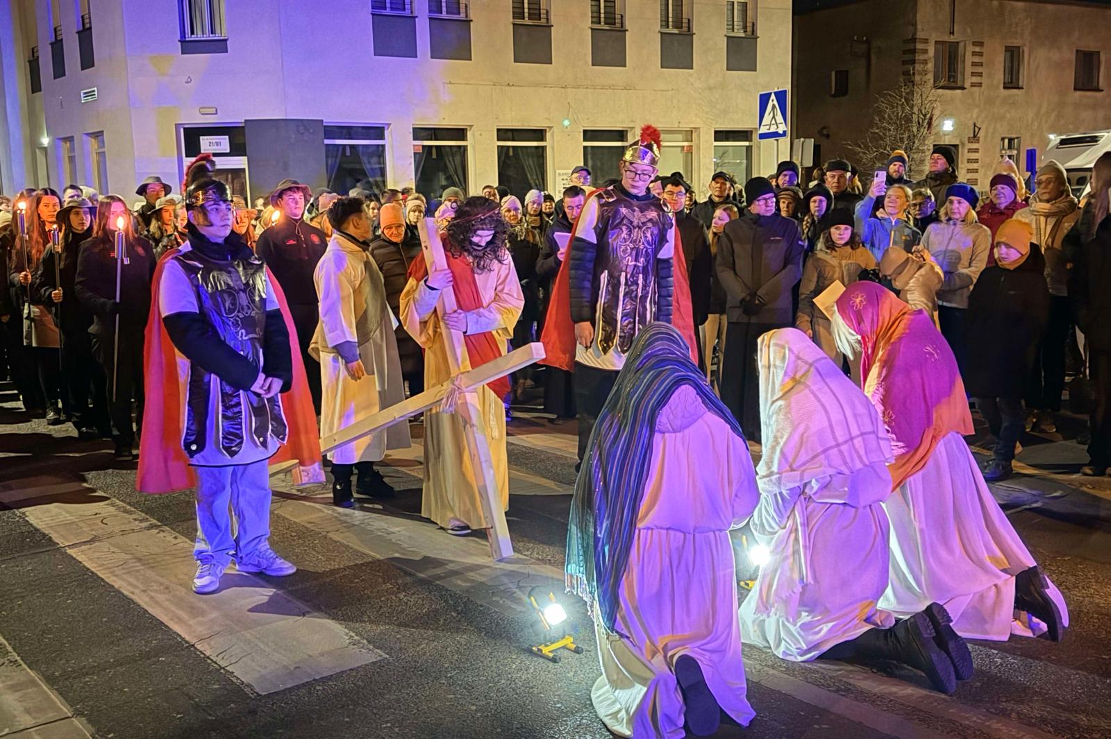 W Wielki Piątek, zgodnie z wieloletnią tradycją, ulicami naszego miasta przeszła Droga Krzyżowa. Towarzyszyliśmy naszemu Panu w Jego Męce i Śmierci, rozważając kolejne stacje Drogi Krzyżowej, które ukazywały drogę Chrystusa na Golgotę, skłaniając nas do zadumy nad sensem cierpienia, ofiary i miłości oraz nad samym sobą.