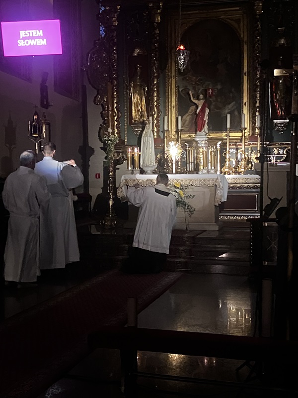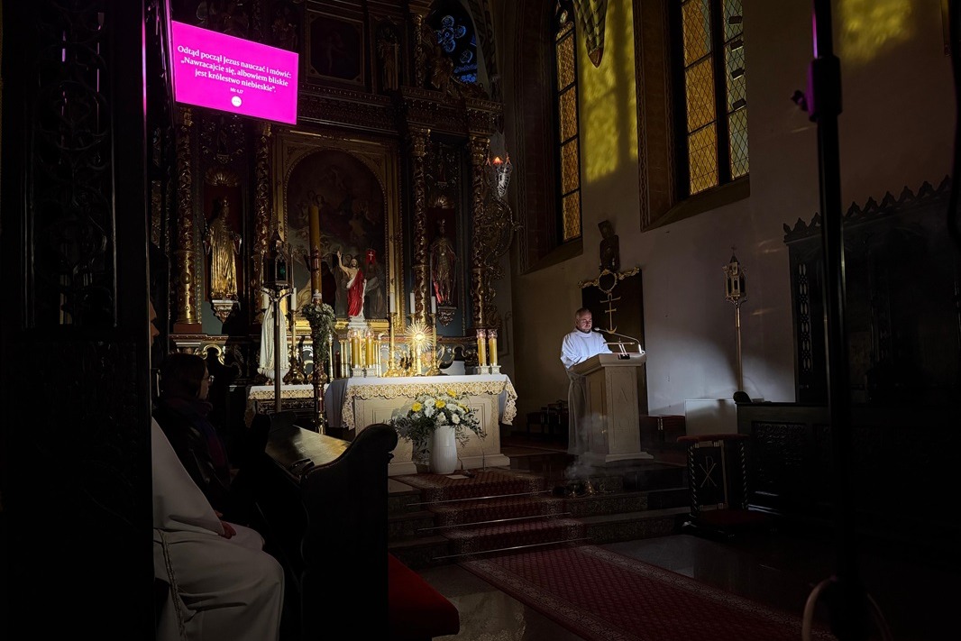 Wczoraj, po wieczornej Mszy św., mieliśmy możliwość uczestniczyć w wyjątkowej Muzycznej Medytacji w obecności wystawionego Najświętszego Sakramentu. W atmosferze ciszy i skupienia wsłuchiwaliśmy się w fragmenty Ewangelii, którym towarzyszyły poruszające teksty z książki „Jestem Słowem”.