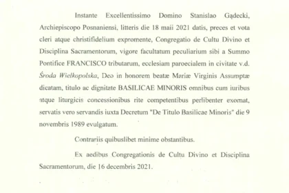 Drodzy Parafianie Z radością informujemy, że Ojciec Święty Franciszek nadał naszej kolegiacie tytuł Bazyliki Mniejszej. Uroczyste ogłoszenie tego faktu przez Księdza Arcybiskupa Metropo...